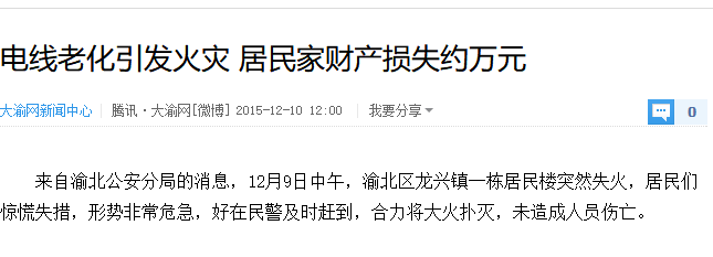 選擇了沒有質(zhì)量保證的電線