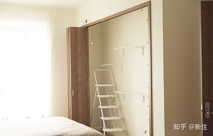 衣柜墻或者嵌入式衣柜,也是極簡的表現(xiàn)方式,這和日式的衣柜布局很相似。
