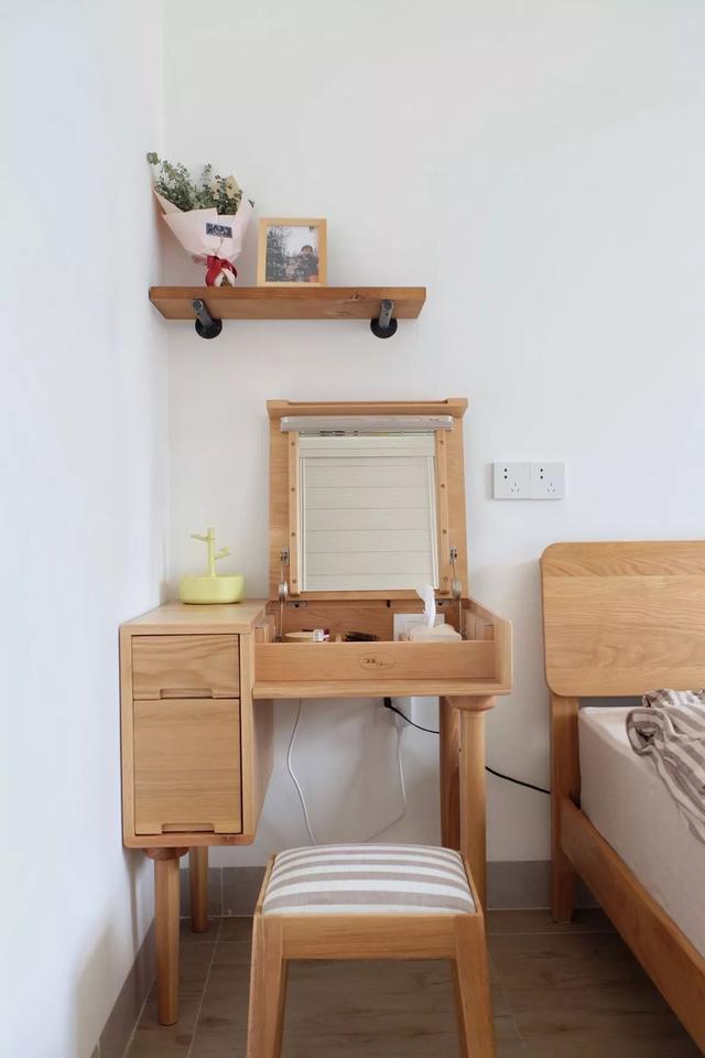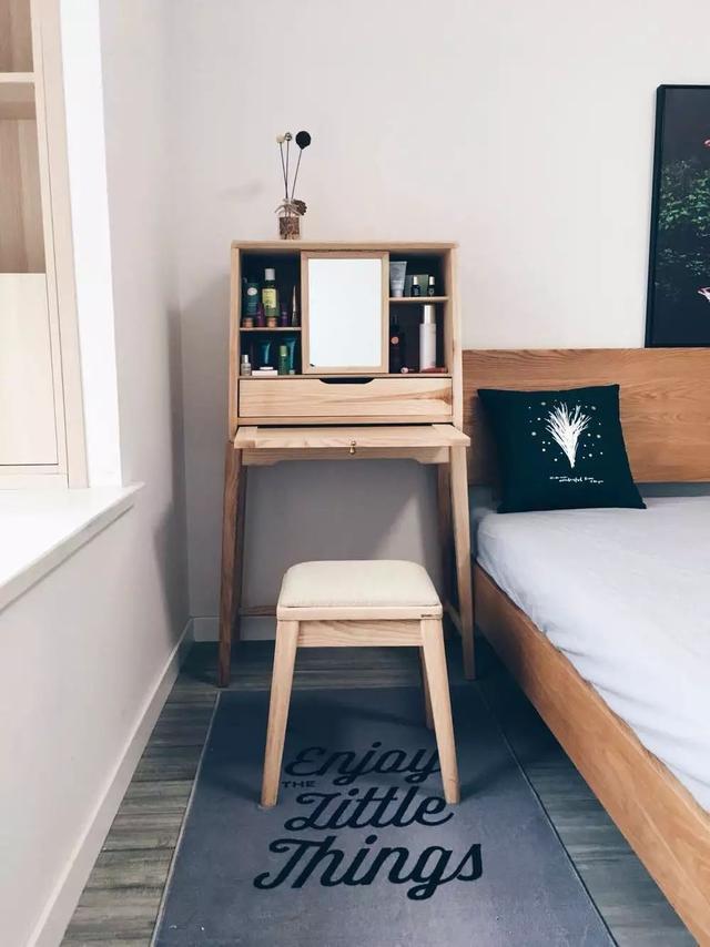 是的,把梳妝臺放在床的側(cè)邊也是個不錯的選擇,剛好挨著窗邊,光線也不會昏暗;