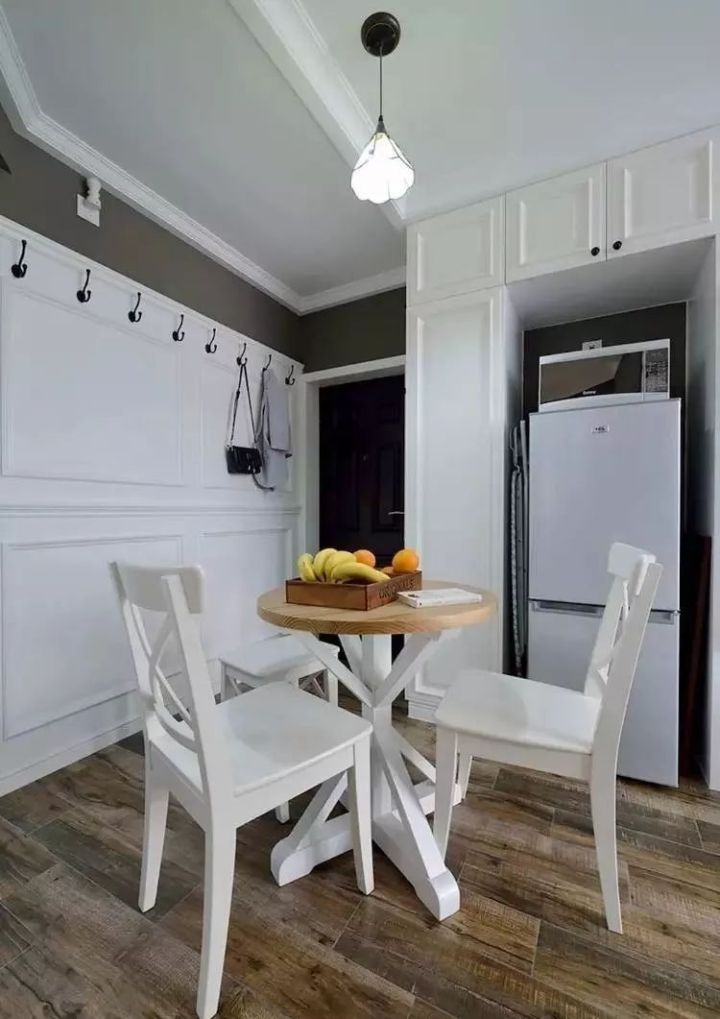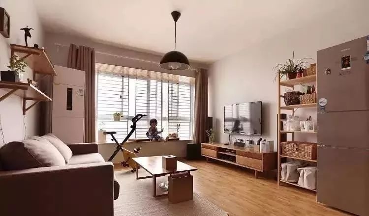 冰箱與柜體合為一體,相當(dāng)節(jié)省空間??看暗牡胤降淖隽藗€(gè)榻榻米,等飯之余,靠著讀幾頁(yè)書(shū)也是挺不錯(cuò)的。